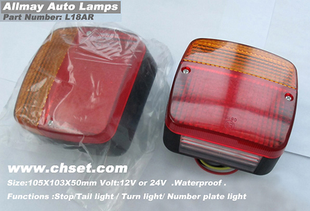 LED Trailer Lamp Size:105mmX103mmX50mm Volt:12V or 24V Functions :Stop/Tail light / Turn light/ Number plate light Waterproof